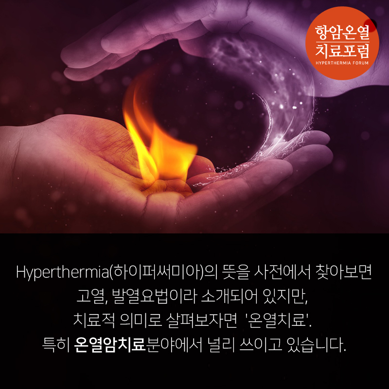 Hyperthermia(하이퍼써미아)의 뜻을 사전에서 찾아보면 고열, 발열요법이라 소개되어 있지만, 치료적 의미로 살펴보자면 '온열치료'. 특히 온열암치료분야에서 널리 쓰이고 있습니다.