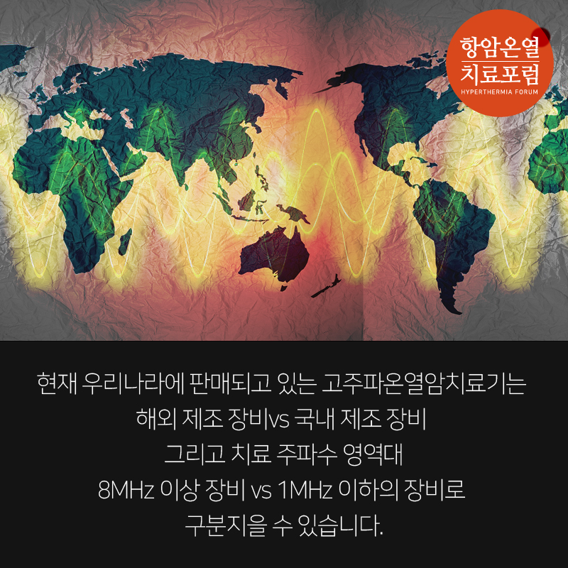 현재 우리나라에 판매되고 있는 고주파온열암치료기는 해외 제조 장비vs 국내 제조 장비 그리고 주파수 영역대 8MHz 이상 장비와 1MHz 이하의 장비로 구분지을 수 있습니다.