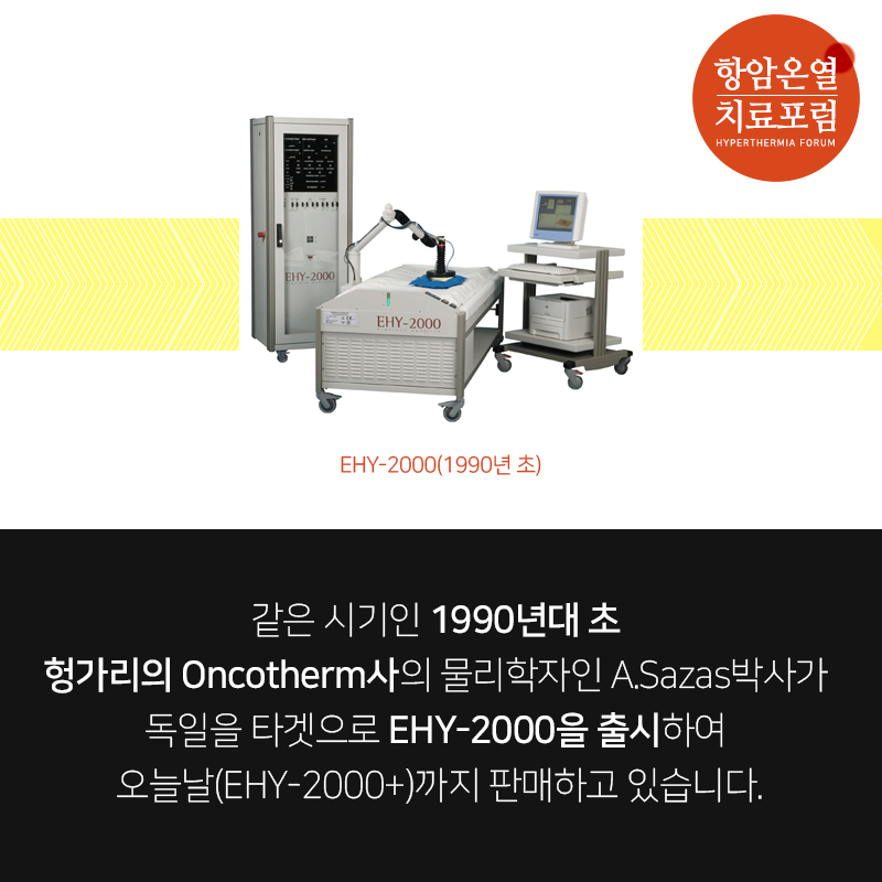 같은 시기인 1990년대 초 헝가리의 Oncotherm사의 물리학자인 A.Sazas박사가 독일을 타겟으로 EHY-2000을 출시하여 오늘날(EHY-2000+)까지 판매하고 있습니다.