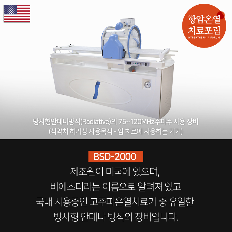 제조원이 미국에 있으며, 비에스디라는 이름으로 알려져 있고국내 사용중인 고주파온열치료기중 유일한 방사형 안테나 방식의 장비입니다.