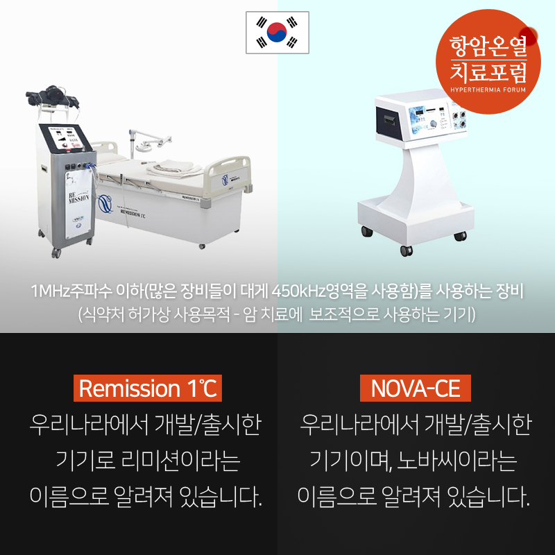 1MHz 이하 주파수 사용 장비(많은 장비들이 대게 450kHz영역을 사용) (식약처 허가상 사용목적 - 암 치료에 보조적으로 사용하는 기기)