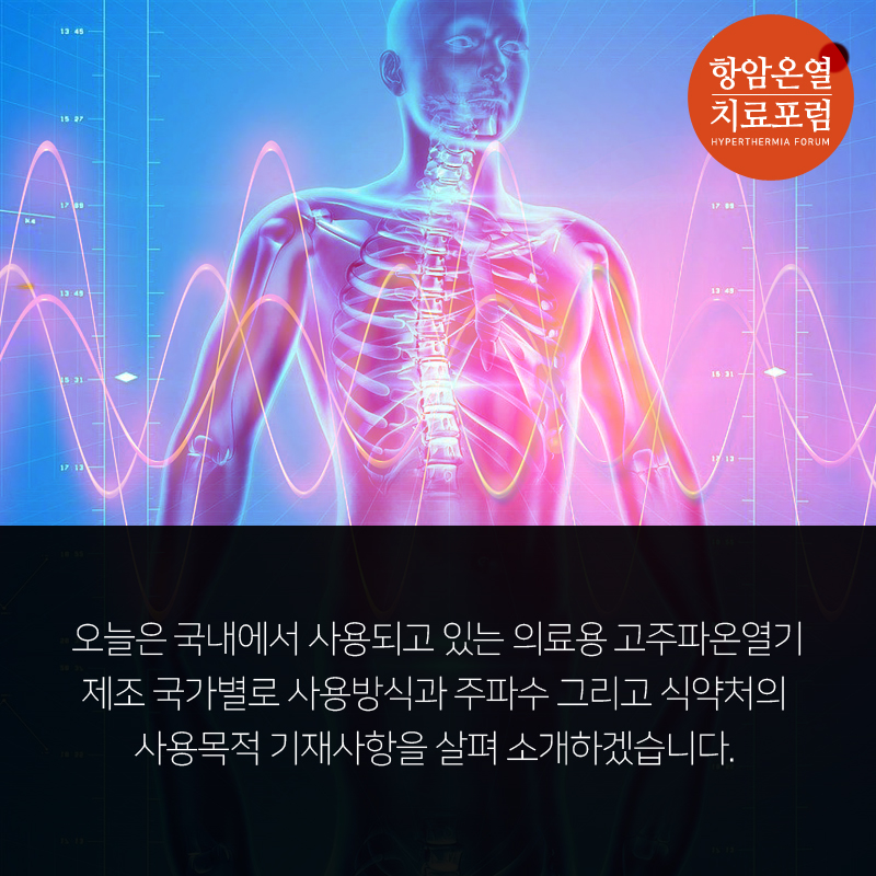 오늘은 국내에서 사용되고 있는 의료용 고주파온열기 제조 국가별로 사용방식과 주파수 그리고 식약처의 사용목적 기재사항을 살펴 소개하겠습니다.