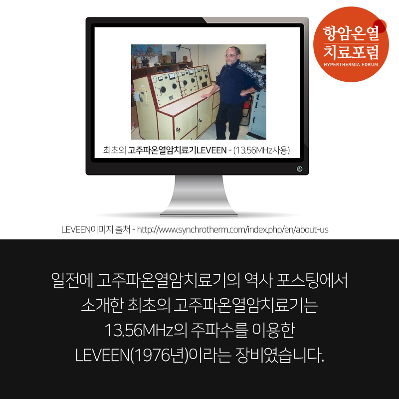 일전에 고주파온열암치료기의 역사 포스팅에서 소개한 최초의 고주파온열암치료기는 13.56MHz의 주파수를 이용한 LEVEEN(1976년)이라는 장비였습니다. 이를 시작으로 Capacitive(정전용량/전기용량/정전식가열) 방식의 13.56MHz를사용한 자동동기화방식의 고주파온열암치료 장비들은 오랜 기간에 걸쳐 많은 해외와 국내에서 임상 논문들과 Clinical Reference를 통해 치료효과와 안전성을 입증해오고 있습니다.