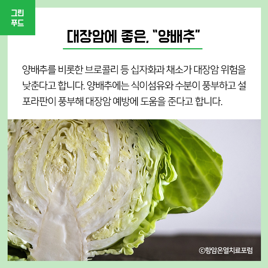 Green Food 대장암에 좋은 초록색 음식 - 양배추