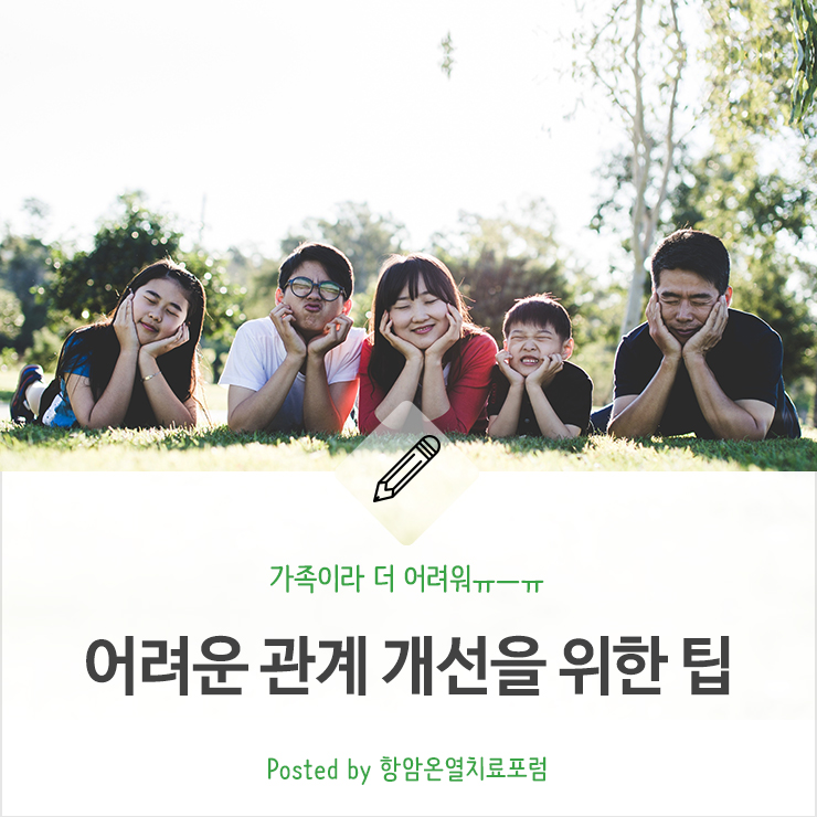 나와 함께하는 가족과의 시간을 좀 더 소중히 하기 위해, 불편한 관계를 개선하기 위해 노력을 기울이는 마음을 이해합니다.
