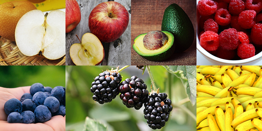 고 섬유질 과일: 배, 딸기, 아보카도, 사과, 라즈베리(블루베리, 블랙베리), 바나나