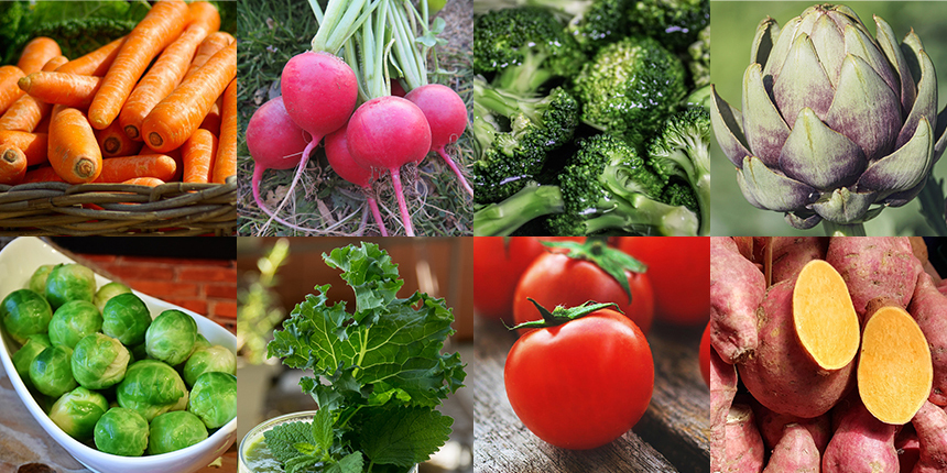 고 섬유질 채소: 당근, 비트, 브로콜리, 아티초크, 방울 양배추, 케일, 시금치, 토마토, 고구마