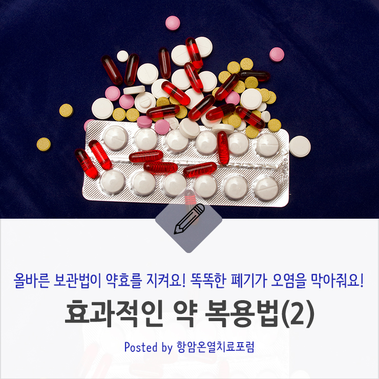 본 내용은 국가 암정보 센터 > 암 정보 나눔터 > 인쇄물 > 한 장 교육 리플릿 > [복약관리] 효과적인 약 복용법 자료에서 부분 발췌/윤색하여 작성하였음을 밝힙니다.