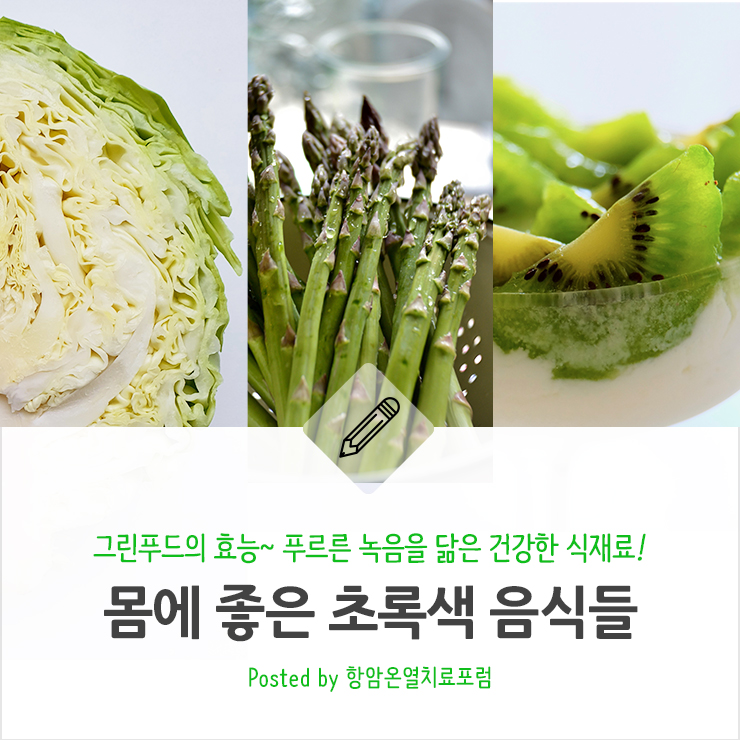 실제로 초록빛 장기로 소개되는 간담췌 장기에 좋은 초록색 음식은 해독작용에 좋은 식재료도 많고 소화기를 보호하고 흡수를 돕는 성분들도 많습니다! 일곱가지 빛깔로 테마를 정하여 각 색상을 띠는 음식과 그 효능에 대해 콘텐츠를 기획하여 포스팅을 소개한 바 있는데요.