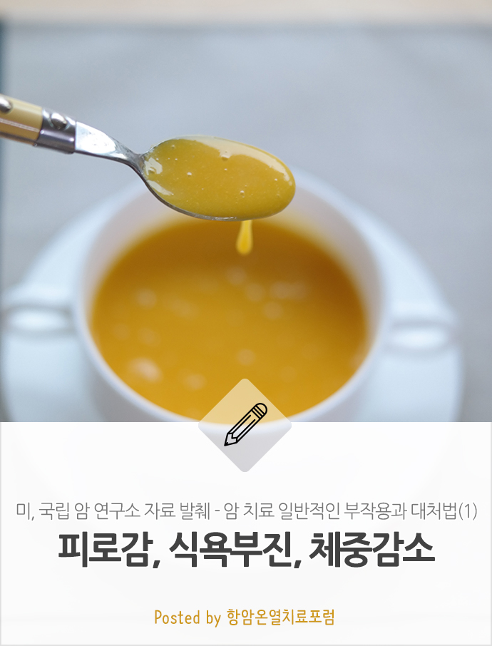 부작용 관리를 통해 영양 공급을 원활히 한다면 환자의 화복과 치료 효과에 도움이 된다고 하는데요. 암 치료와 회복관리를 위해 미국 국립 암 연구소에서 환자를 대상으로 한 무료 배포 자료인 Cancer Resource를 참고하여, 암 치료 중 발생할 수 있는 일반적인 부작용과 대처법에 대해 포스팅으로 정리/소개 드리고자 합니다.
