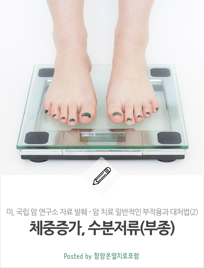 암 치료에는 여러 가지 부작용이 따릅니다. 체중 증가나 부종 역시도 암 치료에 따른 부작용 증상 중 하나로 많은 암 환자들의 삶의 질을 떨어트리는 요소인데요. 이러한 부작용 관리를 통해 체중 증가와 부종을 관리할 수 있다면 환자의 화복과 치료 효과에 도움이 된다고 하는데요. 암 치료와 회복관리를 위해 미국 국립 암 연구소에서 환자를 대상으로 한 무료 배포 자료인 Cancer Resource를 참고하여, 암 치료 중 발생할 수 있는 일반적인 부작용과 대처법에 대해 포스팅으로 정리/소개 드리고자 합니다.