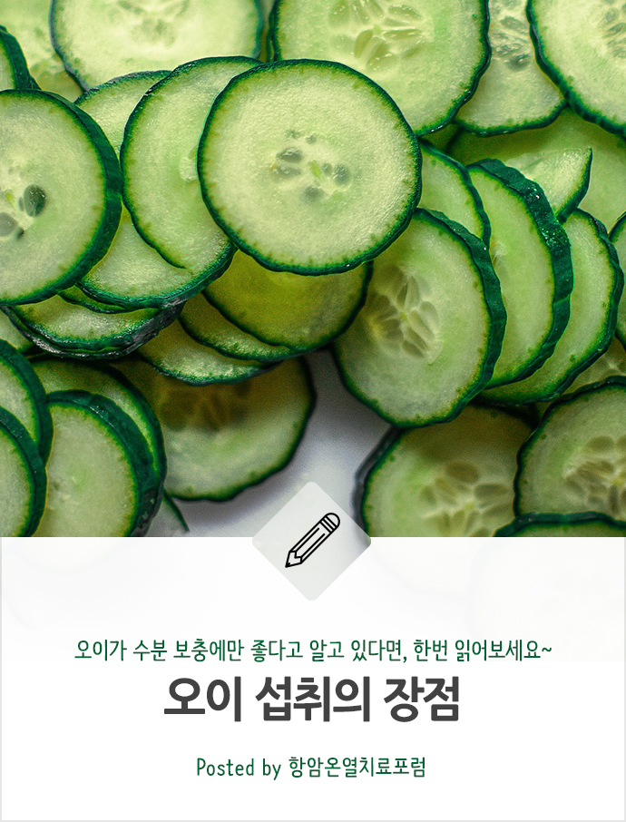 아삭아삭한 식감에 상큼한 향으로 생으로 쌈장만 찍어 먹어도 맛있는 오이! 저처럼 오이를 좋아하는 사람도 있지만 오이를 싫어하는 사람도 많은 호불호가 강한 식재료 중 하나이지요. 김밥 재료, 오이김치, 오이지, 피클, 오이냉국 등 다양한 요리에 활용하는 오이의 장점에 대해 알아보도록 할까요?
