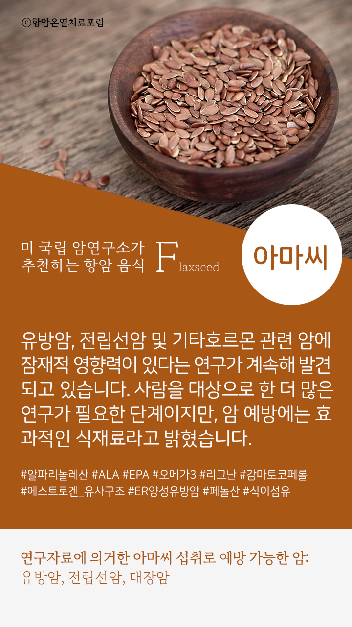 추천) 아마씨의 유방암과 전립선암 예방 효과를 담은 별도의 발간물도 함께 읽어보시면 좋아요!