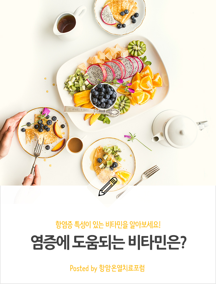 염증은 특정 조직의 손상 또는 감염에 대한 일종의 생체 내 반응을 말합니다. 수년간의 연구를 통해 염증을 이겨낼 수 있는 방법중 하나인, 항염증 화합물을 함유한 특정 비타민들이 밝혀졌고 이러한 비타민은 보충제 형태로 섭취하거나 자연적으로 포함된 음식을 섭취함으로써 얻을 수 있는 걸 알게되었는데요. 때문에 건강을 위해서 또 염증을 관리하기위해서 개인적으로 비타민보충제를 챙겨먹거나, 풍부한 음식을 더 챙겨먹게 되는 일상을 살고 있습니다. 나에게 필요한 비타민군은 어떤 것일이 오늘의 콘텐츠를 통해 알아보세요!