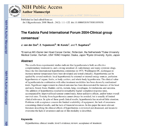 van der Zee J, Vujaskovic Z, Kondo M, Sugahara T. Int J Hyperthermia. 2008 Mar;24(2):111-22.