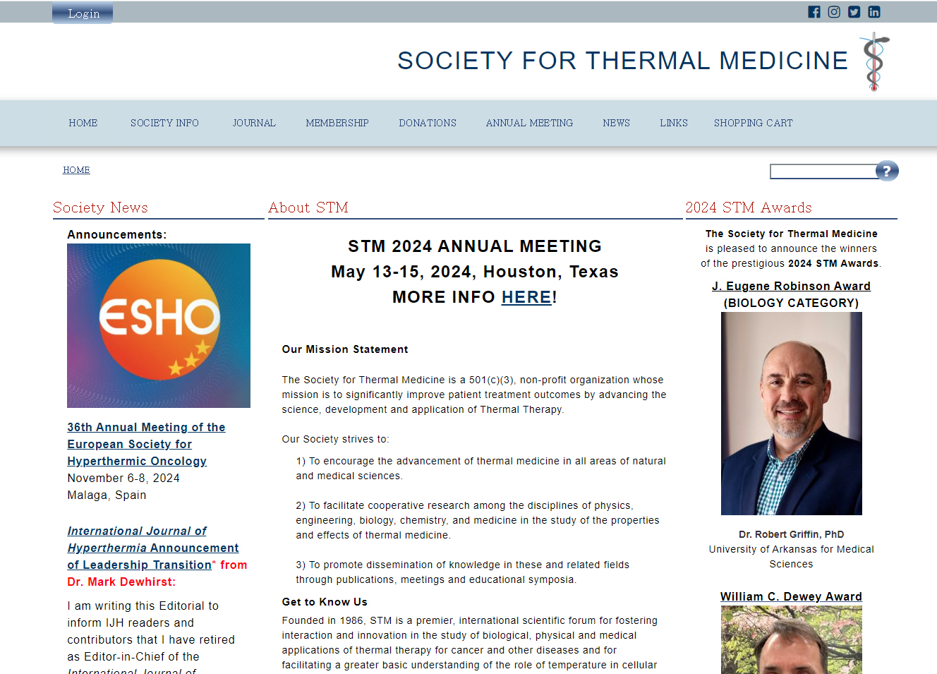 미국 등 아메리카 대륙에는 STM(Society for Thermal Medicine) 이라는 이름으로 온열종양학회가 있고, 유럽에는 ESHO(European Society for Hyperthermic Oncology) 라는 이름으로 그리고 아시아에는 ASHO(Asian Society for Hyperthermic Oncology)라는 공식학회가 있다.