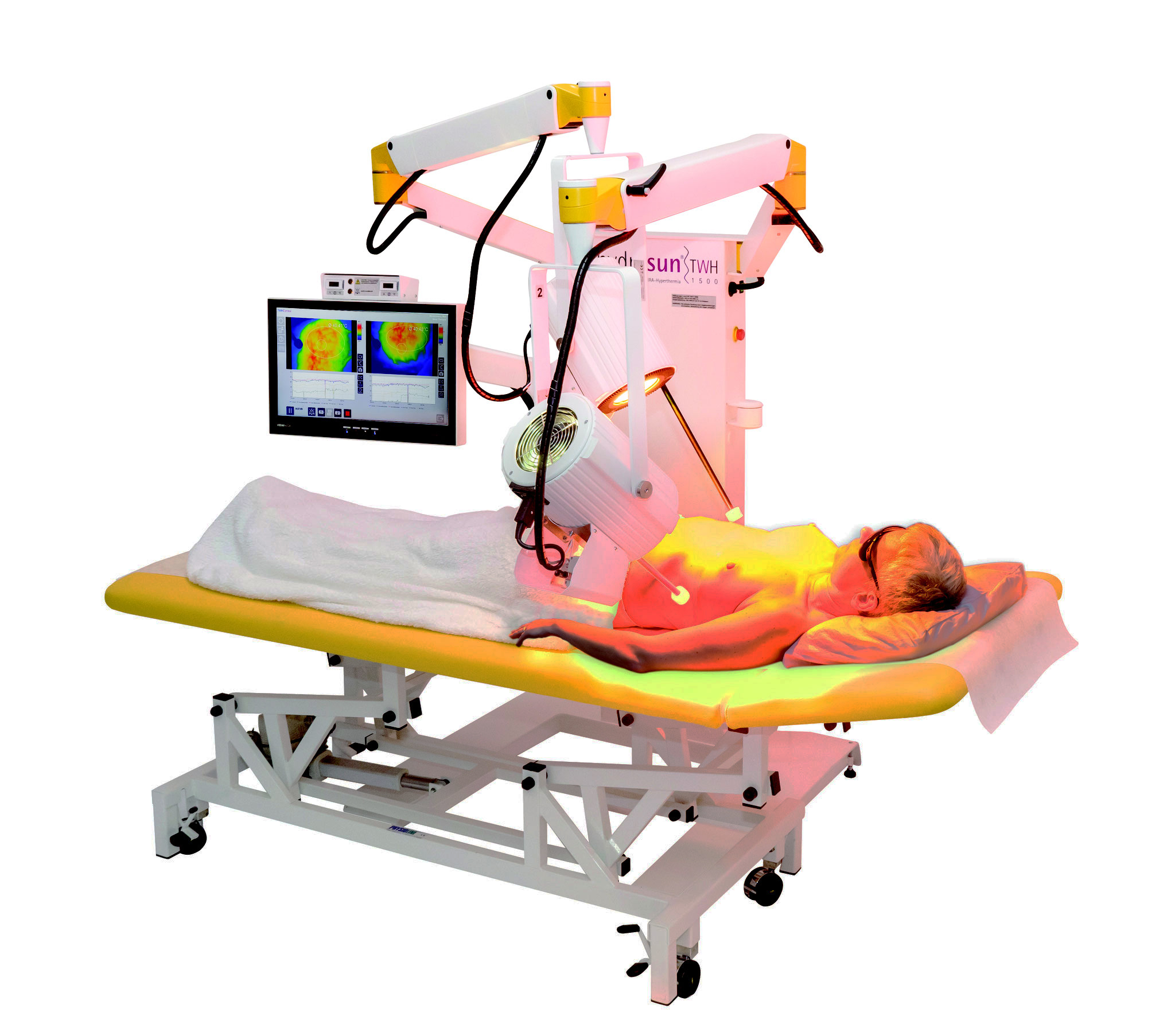 1. TWH-1500: Non-contact Real time Thomography-guided wIRA Superficial Hyperthermia-1500, 하이드로선사 및 스위스 Markus Notter박사(방사선종양학전문의)에 의해 개발된 표재성온열치료기로 피부에 접촉하지 않고 실시간 온도 감시가 가능한 위라(wIRA) 기술 기반 기기이다. 이 기기를 통하여 재발유방암(LRBC)에 대한 기존의 TNM 표준 분류가 아닌 새로운 분류기준을 수립하여 재방사선(re-RT)+표면온열치료(s-HT)를 동시요법으로 수행할 시 재발유방암(LRBC)에 대한 국소 종양제어 및 반응률이 매우 향상된 유망한 결과를 얻게 된 새로운 치료법을 제시한다.