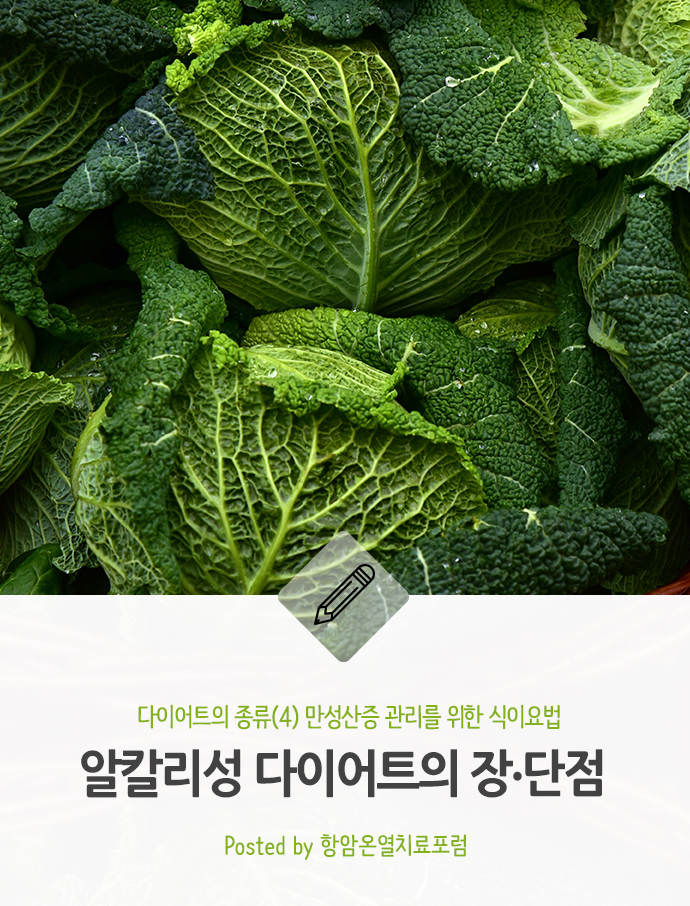 만성 산증은 암, 골다공증 , 고혈압, 당뇨병과 같은 질병의 위험이 더 높이는 것으로 알려져 있는데요. 그렇다고 해서 알칼리성 식단만을 먹는 것이 이러한 만성질환을 100% 예방해 준다거나 무조건 좋은 것은 아니랍니다.