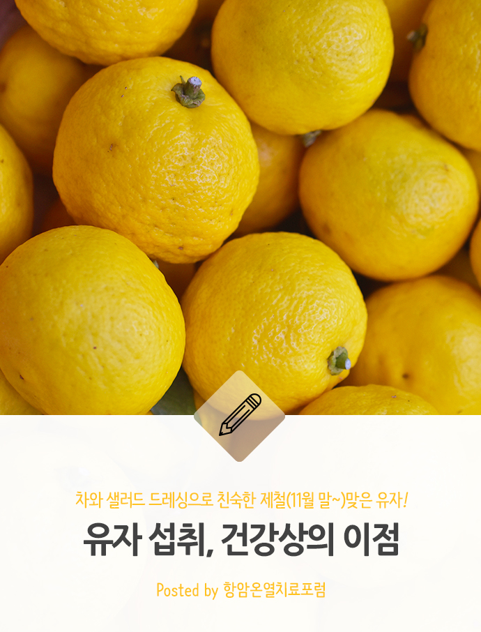 우리나라에서 유자는 11월 말부터 출하된다고 하는데요. 곧 다가올 제철맞을 유자! 유자 섭취의 효능을 알아보세요~