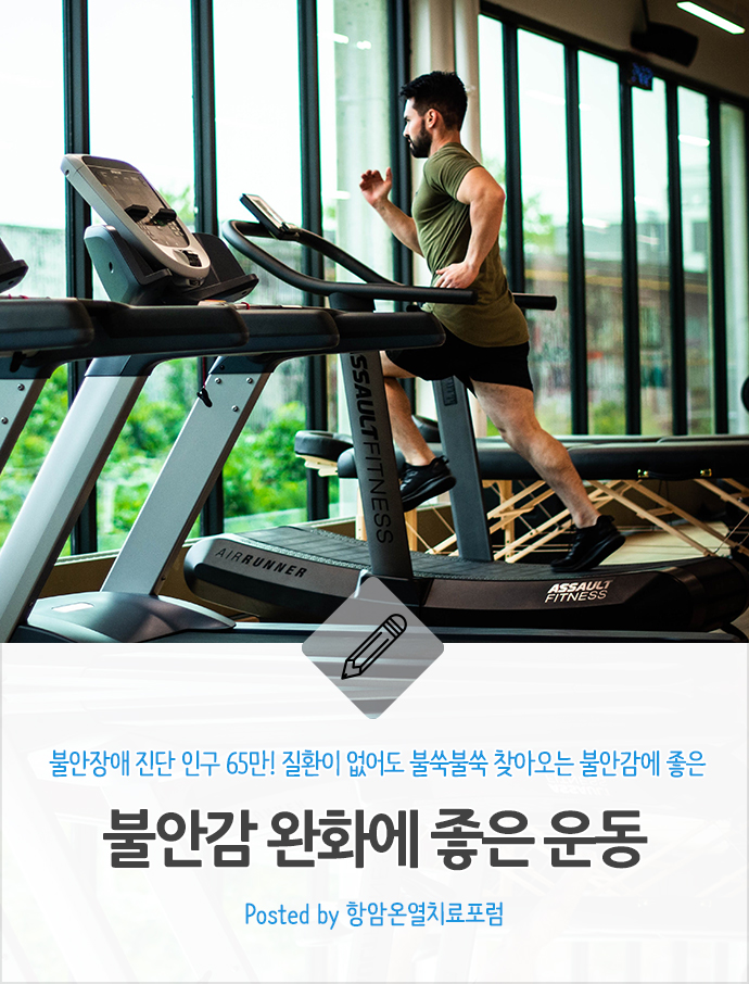 질환으로 진단받을 만큼 불안감으로 인해 일상이 어렵지는 않더라도, 마음이 괴롭거나 약해져있을 때 문득문득, 불쑥불쑥 솟아오르는 알게 모르게 불안한 감정을 다스리는 데는 운동이 좋다는 과학적 연구들이 많다고 하는데요. 오늘의 콘텐츠를 통해 불안감을 다스리는데 좋은 운동에 대해 알아보세요!