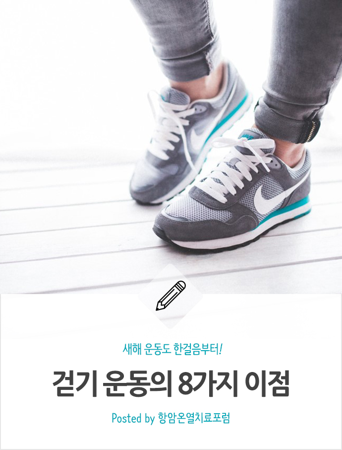 새해가 밝았습니다. 작심삼일이라는 말이 맞닿는 오늘은 벌써 새해의 삼일째되는 날입니다. 새해 결심에서 빠지지 않는 것은 아마도 운동일텐데요. 천리길도 한걸음부터! 가장 손쉬운 운동 방법인 걷기의 장점에 대해서 알아보세요!