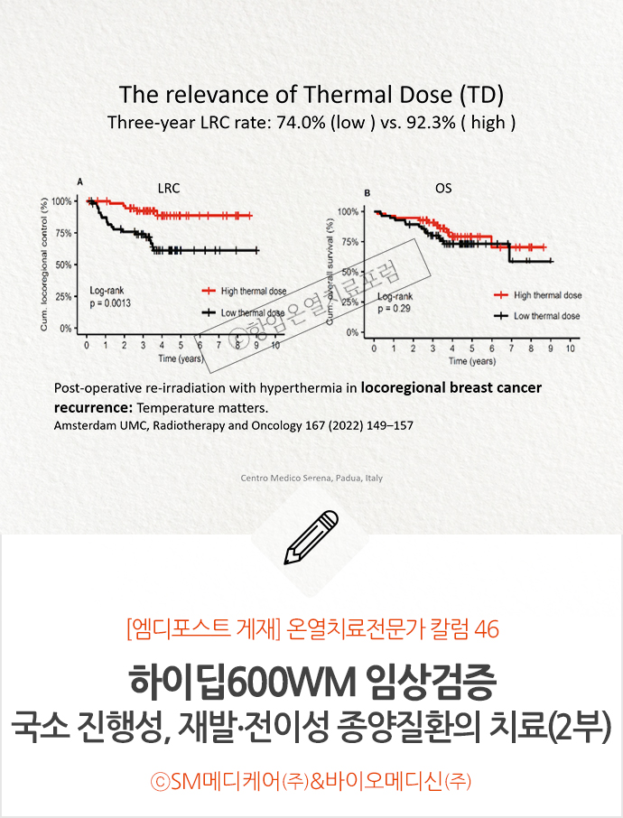 [온열치료 전문가 칼럼 46] ‘하이딥600WM의 임상검증’ 국소 진행성, 재발∙전이성 종양질환의 치료 – 2부