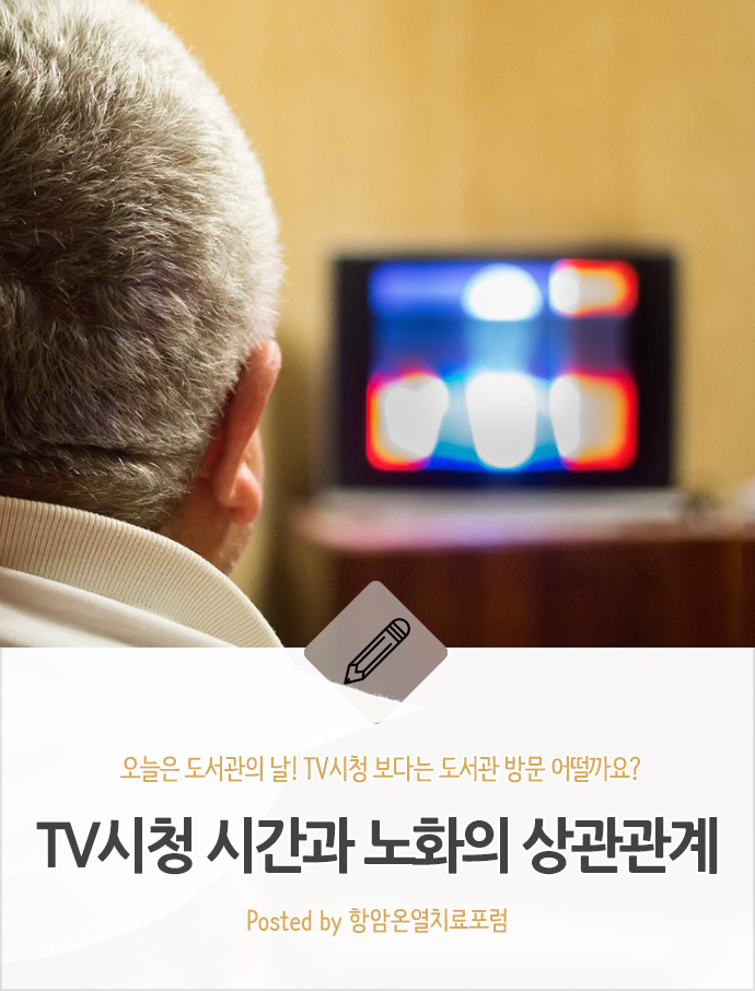 도서관의 날을 맞이해! TV시청(=영상 콘텐츠) 시간을 줄이고 가까운 도서관에 방문해 보는건 어떨까? 하는 취지로 TV시청 시간과 노화의 상관관계라는 콘텐츠를 소개하고자 합니다!