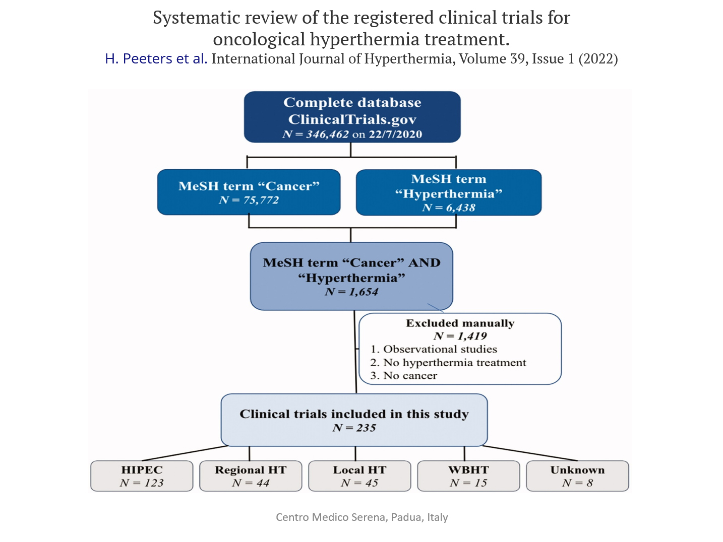 H. Peeters, E. M. van Zwol, L. Brancato, M. G. M. C. da Cunha & J. Bogers (2022) Systematic review of the registered clinical trials for oncological hyperthermia treatment, International Journal of Hyperthermia, 39:1, 806-812, DOI:10.1080/02656736.2022.2076292