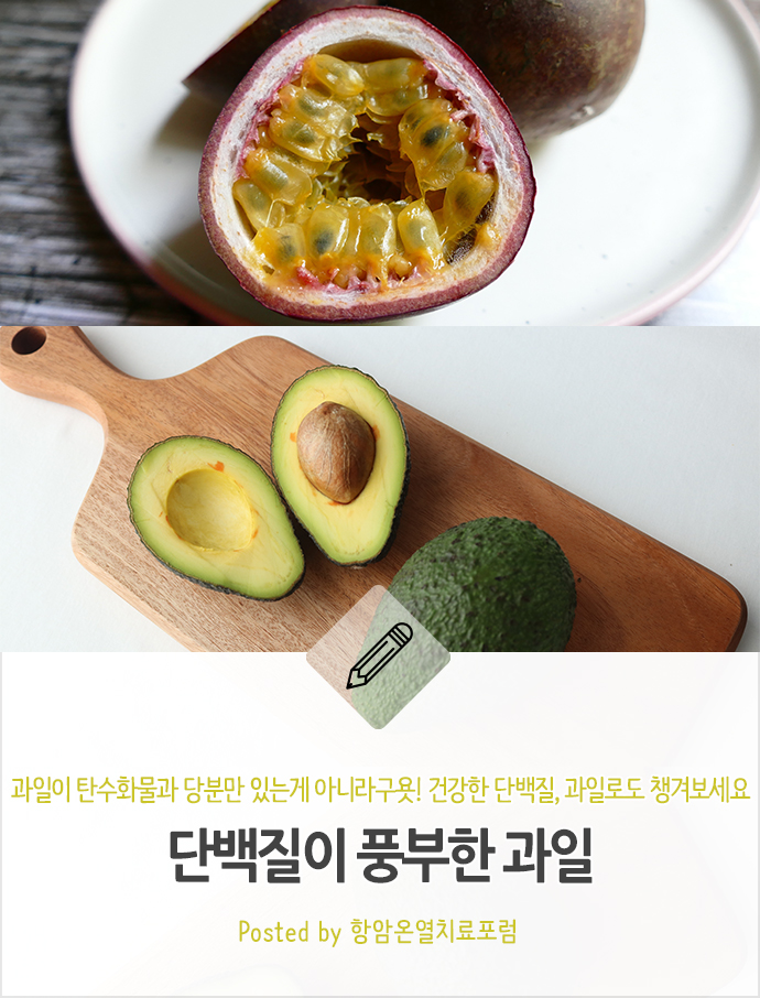 맛잘알들은 즐겨 먹는다는 백향과(패션 프루트)는 열대과일 중 하나인데요, 섬유질이 풍부하고 당분이 높지 않아 당뇨환자들에게도 권장한다고 하는데요. 패션프루트 한 컵에는 단백질이 5g을 담고 있다고 해요. 동물성 단백질만 먹는다면, 섬유소 섭취가 걱정되지만 크기대비 아주아주 풍부한 섬유질을 가진 패션 프루트를 식단에 곁들인다면 다양한 영양소를 섭취할 수 있겠습니다!
