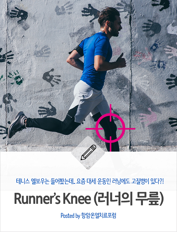 가장 손쉬운 운동이고, 선사시대부터 이어져온 인류의 생존과도 직결된 '달리기'는 몇년 전부터 대세로 자기매김한 운동이기도 합니다. 아침에 뛰는 조깅, 밤에 뛰는 야깅, 천천히 달리는 슬로우 러닝 등 다양한 방식의 달리기도 늘어나는 것을 볼 수 있습니다. 또한, 러너들의 동기부여를 위한 5K, 10K, 15K 마라톤과 본격적 마라톤 세계 입성이라 할 수 있는, 하프마라톤 그리고 내일, 광복절을 기념하는 8.15km 마라톤과 같은 동기 부여와 기념적인 러닝 행사들도 많이 기획되고 해마다 참가인구가 늘어나는 걸 볼 수 있는데요. 이에 따라, 러너들에게 자주 발생하는 고질병인 무릎 통증이 바로 러너스 니라고 불린다고 합니다.