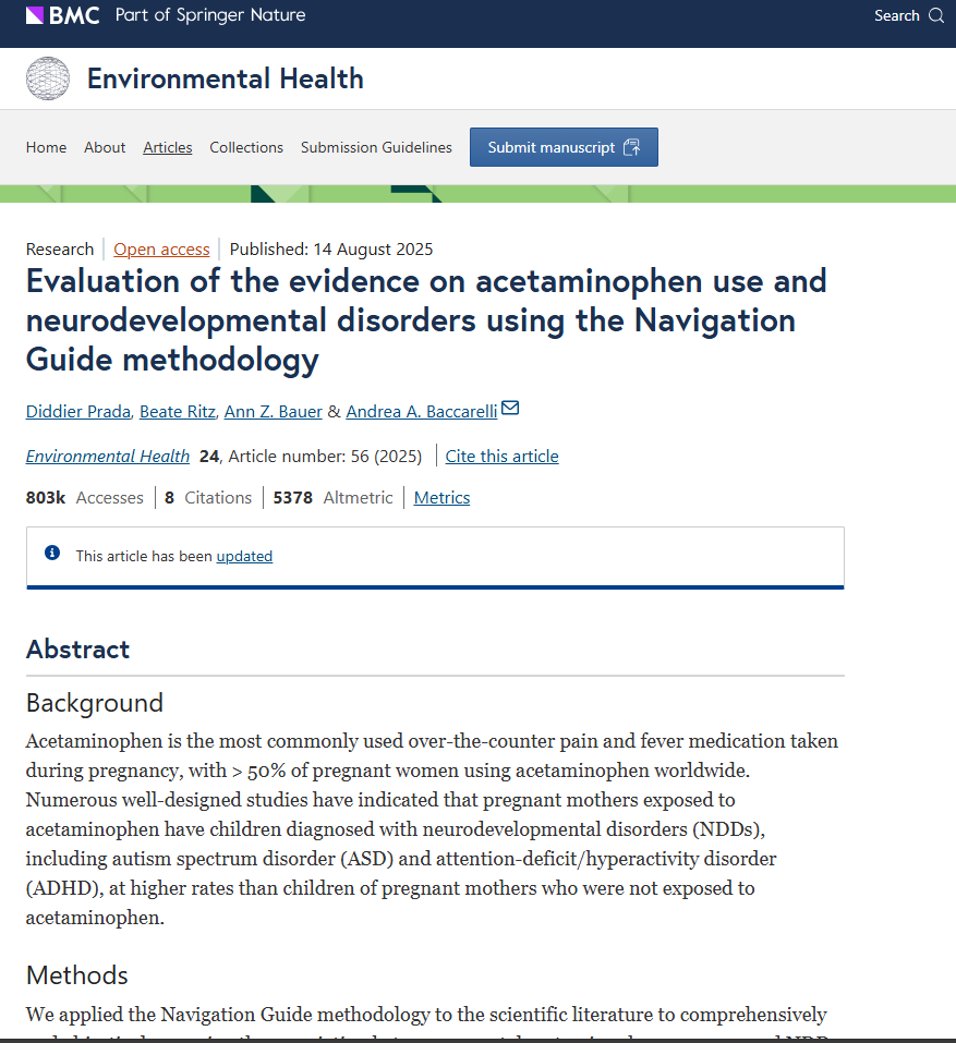 태아기 아세트아미노펜 노출과 NDD 및 자손의 관련 증상 사이의 연관성을 포괄적이고 객관적으로 조사하기 위해 Navigation Guide 방법론을 과학 문헌에 적용한 연구가 2025년 8월에 발표됐기 때문입니다.