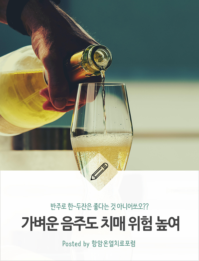 일주일에 술 1~3잔만 마셔도 치매 위험이 15% 증가하는 것으로 나타났다. 고 전하였습니다.