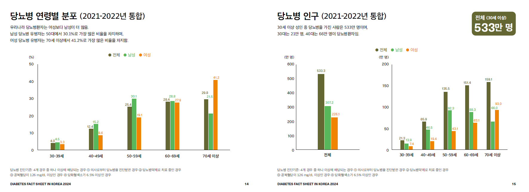 대한당뇨병학회에서 2024년 발표한 자료(화면캡처 하단 첨부)에 따르면, 우리나라 당뇨병 유병률은 30세 이상 성인 7명 중 1명(2022년 기준)이 앓고 있는 것으로 나타났다고 밝혔습니다. 어? 그러면 유병률이 높지 않은데? 라고 생각할 수 있겠지만..