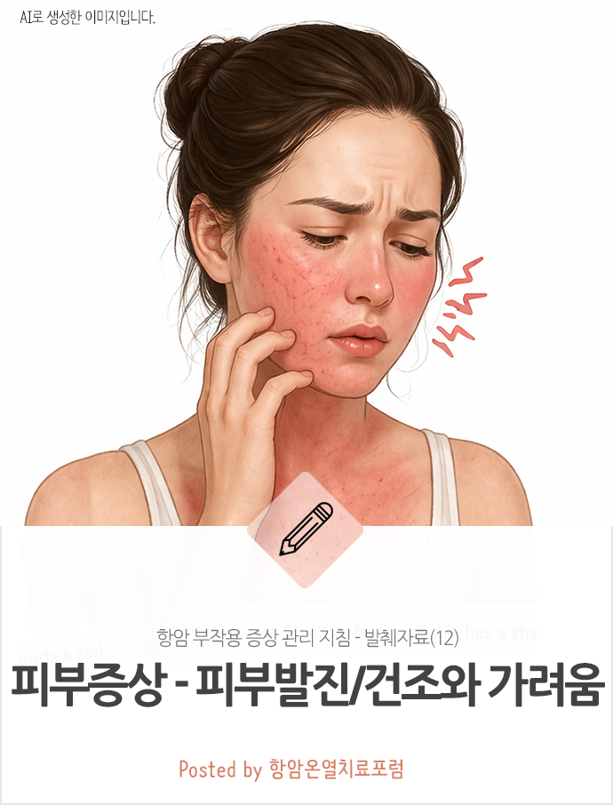 '항암 부작용 피부증상'인 - 피부발진과 건조와 가려움에 관한 내용입니다.