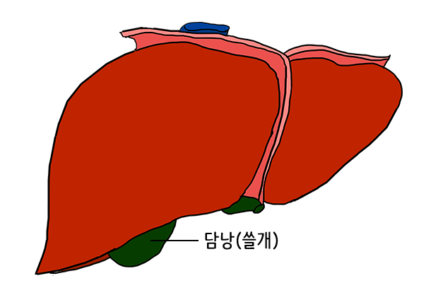 간에서 분비된 담즙(쓸개즙)을 십이지장, 즉 샘창자까지 운반하는 경로를 담도(쓸갯길, 담관)라고 하며, 담낭(쓸개, gallbladder)은 간관을 타고 나온 담즙을 담낭관이라는 가느다란 나선형의 관을 통해 받아들여 농축한 뒤 일시적으로 저장했다가 내보내는 창고 같은 곳입니다. 길이가 7~10cm 정도로 작은 담낭은 간 아래쪽에 붙어 있고 간외 담도와 연결되어 있습니다. 담즙은 간에서 만들어져서 간내 담도, 담낭, 간외 담도를 차례로 거쳐 십이지장에 도달하게 됩니다. 담즙은 췌장(이자)에서 분비되는 췌액과 달리 소화효소가 없지만, 주성분의 하나인 담즙산이 지방질을 유화하여 소화 흡수가 잘 되도록 합니다.