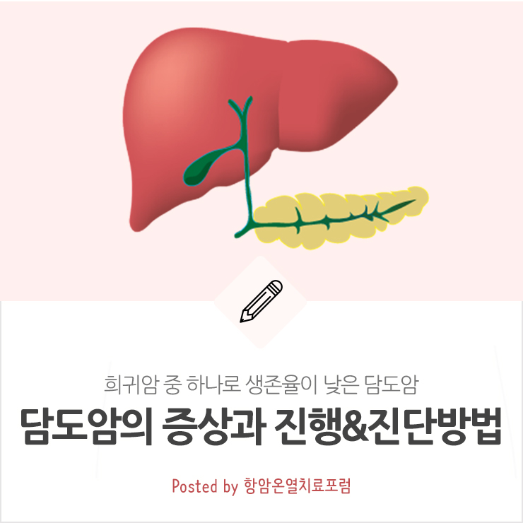 담즙이 간에서부터 십이지장으로 내려가는 길인 담도에 생기는 악성 변병인 담도암은 초기 특별한 증상이 없어 조기발견이 매우 힘든 암으로 다른 암에 비해 생존률이 매우 낮다고 알려져 있습니다.