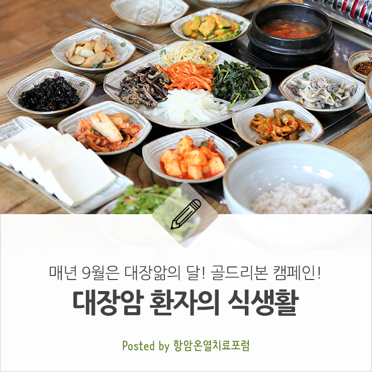 9월 '대장앎의 달'로 대장암 골드리본 캠페인 행사가 이루어지고 있습니다! 저희 항암온열치료포럼에서도 대장암 컨텐츠를 시리즈로 소개해드리고 있는데요.