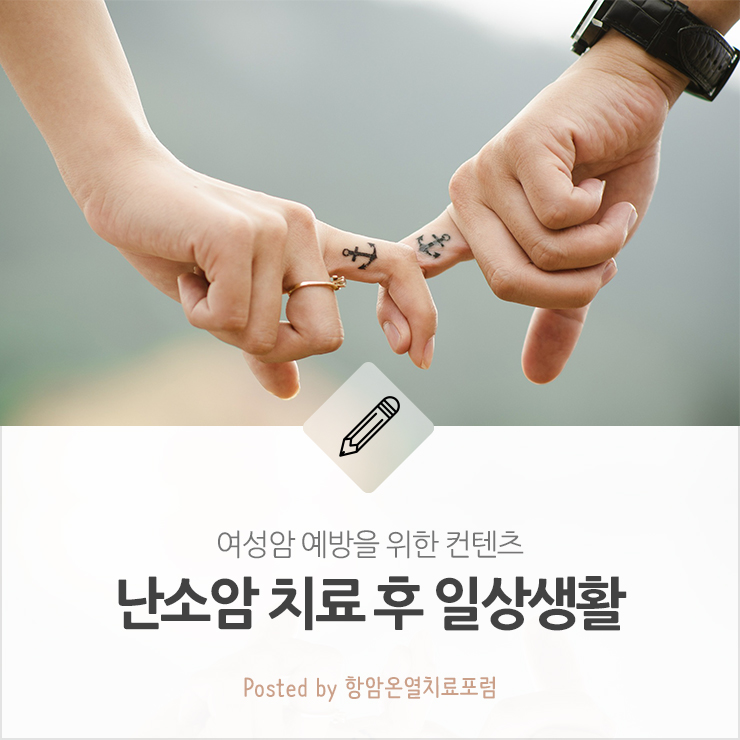 난소암 치료 후 성생활의 내용은 국가암정보센터의 내가 알고싶은 암 코너에서 부분 발췌하였음을 밝힙니다.