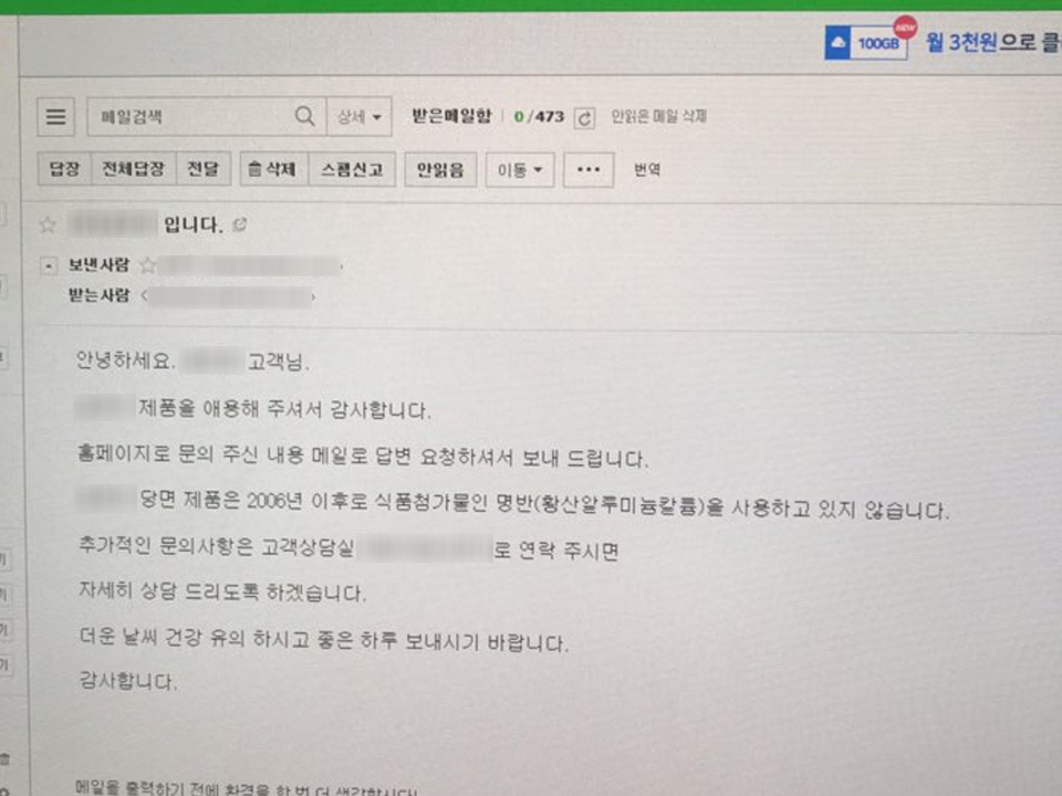 제가 즐겨먹는 당면 회사 고객 게시판에 문의글 넣었습니다.