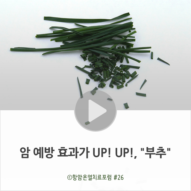 다른 음식과 함께 곁들여 먹으면, 암 예방 효과를 UP! UP! 시키는 부추는 단백질, 섬유질, 카로틴, 비타민B2, 비타민C, 칼슘, 철 등 영양소를 많이 함유하고 있다는 것을 기억해주세요.