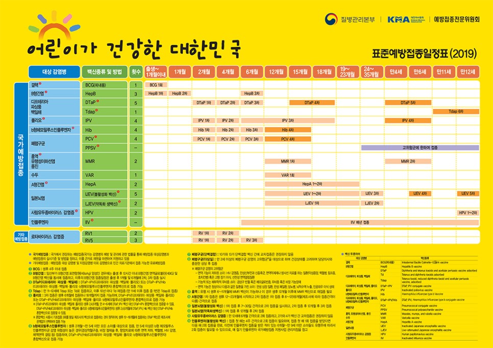 (질병관리본부 홈페이지에서 제공하는 표준 예방 접종 일정표를 참고하시면 좋습니다.)
