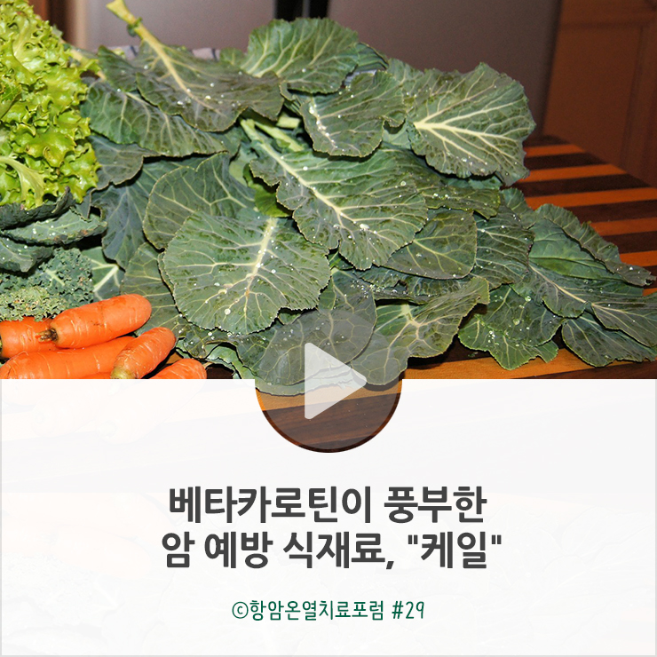 케일에는 암 예방에 효과적인 성분으로 알려진 베타카로틴이 녹황색 채소 중 가장 많이 들어있다고 합니다.