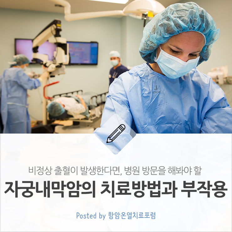 지난 컨텐츠에 이어 오늘 소개드릴 내용은 자궁내막암의 치료방법과 치료 부작용입니다.
