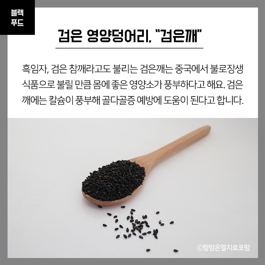검은깨에는 칼슘이 풍부해 골다골증 예방에 도움이 된다고 합니다.