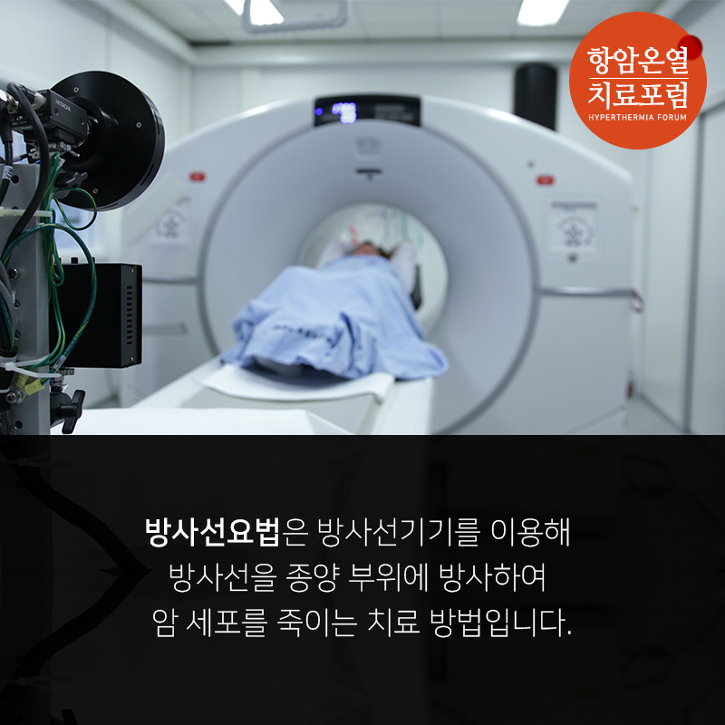 방사선요법은 방사선기기를 이용해 방사선을 종양부위에 방사하여 암 세포를 죽이는 치료 방법입니다.