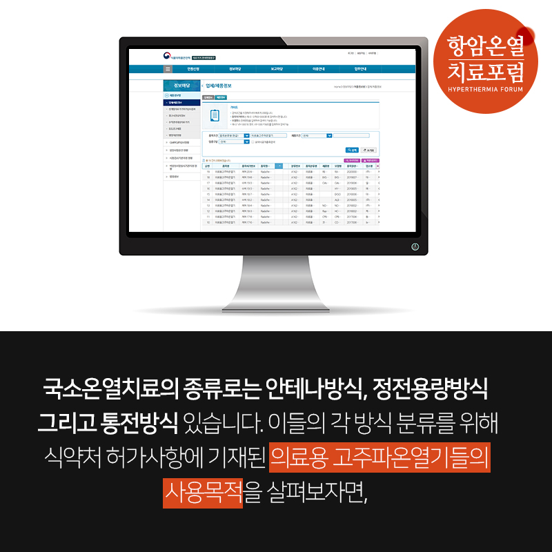 이들의 각 방식 분류를 위해 식약처 허가사항에 기재된 의료용고주파온열기들의 사용목적을 살펴보자면,