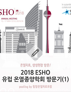 estro2 온열치료, 생생 현장방문! 2018 ESHO(유럽온열종양학회) 방문기(1) 온열치료가 어떠한 종양 치료에 효과를 어떻게 보였는가에 대한 증례 발표와 연구결과를 발표하는 자리가 바로 온열 종양학회입니다. 독일 온열종양학회(DGHT)를 비롯해 유럽 온열종양학회(ESHO)는 온열 종양학에 있어 권위 있는 학회임에 틀림없습니다. 두 학회의 다년간의 성공적인 연구결과와 성원에 힘입어 최근에는 국제 온열종양학회(ISHO)도 온열 종양학회 중 한 축으로 부상 중에 있습니다는 것을 지난해 ESHO방문기에서 말씀드린 적 있습니다. 지난해에 이어 올해도 2018 ESHO방문기를 준비해보았습니다. 금번 학회는 5월 16일~17일(3일간) 독일 베를린에서 Langenbeck-Virchow-Haus Luisenstraße와 Charité 병원에서 개최되었다고 하는데요. 작년에 이어 올해도 온열치료학회.. 2018. 7. 23. 2017 독일온열종양학회(DGHT) 방문기 지난 여름에는 ESHO(유럽온열종양학회)를 다녀온 줄리아나님의 글을 기고 받아 온열치료 생생현장 방문 소식을 전한 적이 있었지요. 이번 가을에는 좋은 기회가 닿아 2017독일온열종양학회에 직접 다녀오게 되었고, 항암온열치료 포럼 블로그 지기인 제가 직접 방문기를 쓰게 되었습니다! 이번 방문에는 줄리아나님의 도움을 받기도 했습니다. 독알못(독일어 알지 못해요)인 저는 큰 도움을 받았기에 이 페이지를 빌어 다시금 감사인사드리며, 독일온열종양학회 방문기를 소개드립니다. 온열치료, 생생현장방문! 2017 DGHT(독일온열종양학회) 방문기 금번 심포지엄은 BLICK ZURÜCK NACH VORN (LOOK BACK TO FRONT)이라는 주제로 9월 30일 베를린에서 개최되었습니다. 위의 주제에 걸맞게 다양한 학.. 2017. 11. 6. 이전 1 다음